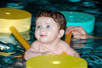 Niveau pour intégrer ce groupe : Savoir effectuer une étoile de mer ventrale et dorsale avec matériel / Savoir mettre la tête sous l'eau sans stress / Savoir sauter dans le petit bain avec matériel / Savoir récupérer un objet dans le petit bain avec l'aide du parent.